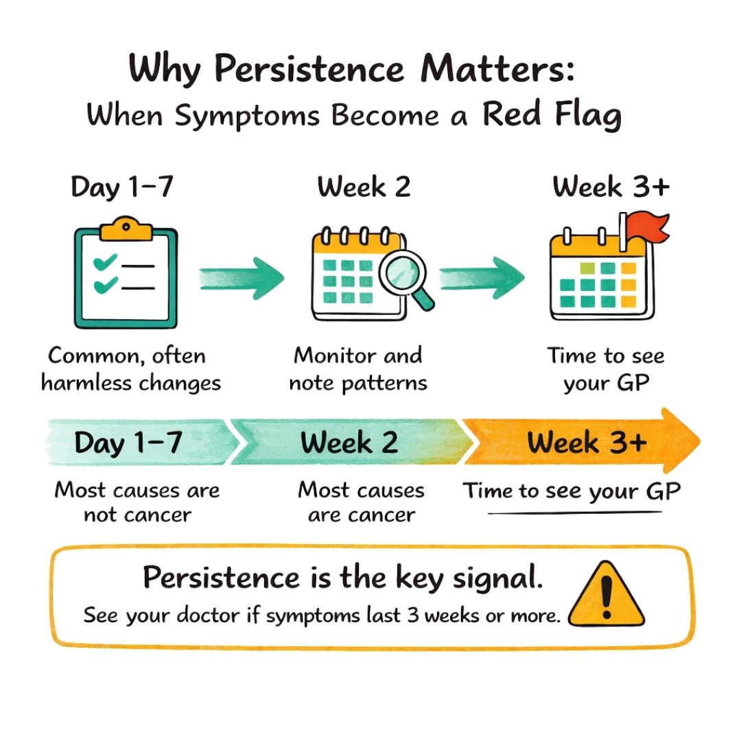 Key Insight: These symptoms might not scream 'bowel cancer' on their own, but their persistence is the real giveaway. A single off-day is rarely a concern, but a new symptom that hangs around for three weeks or more is your cue to seek medical advice.