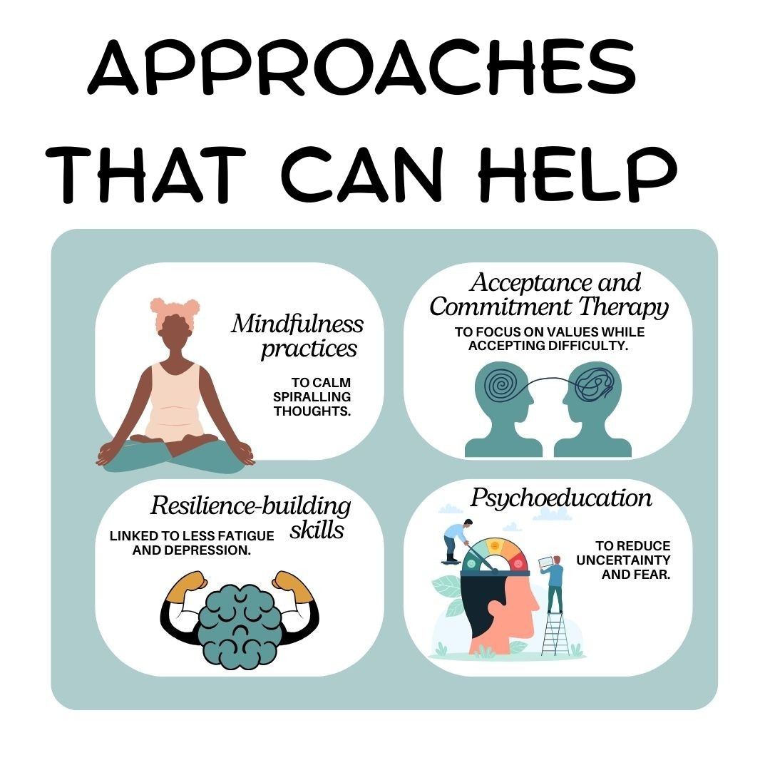 Research shows there are ways to ease this burden. Mindfulness, acceptance, therapy, resilience, balanced information, and supportive relationships are just a few of the dozens of effective, tested ways that are out there to help you in this journey. These tools do not remove the uncertainty, but they can help you learn how to live with it more peacefully, as life itself is the land of uncertainties.