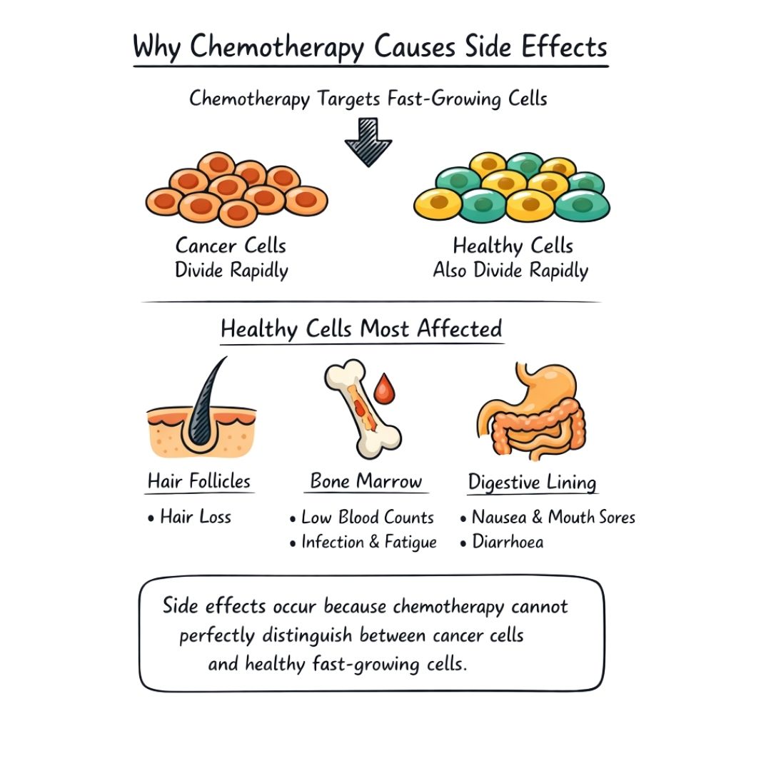 Chemotherapy is a powerful, life-saving treatment, but its strength lies in its ability to attack fast-growing cancer cells. The catch? It can't always tell the difference between those cancer cells and healthy cells that also divide quickly. This collateral damage is what causes the side effects so many people experience.