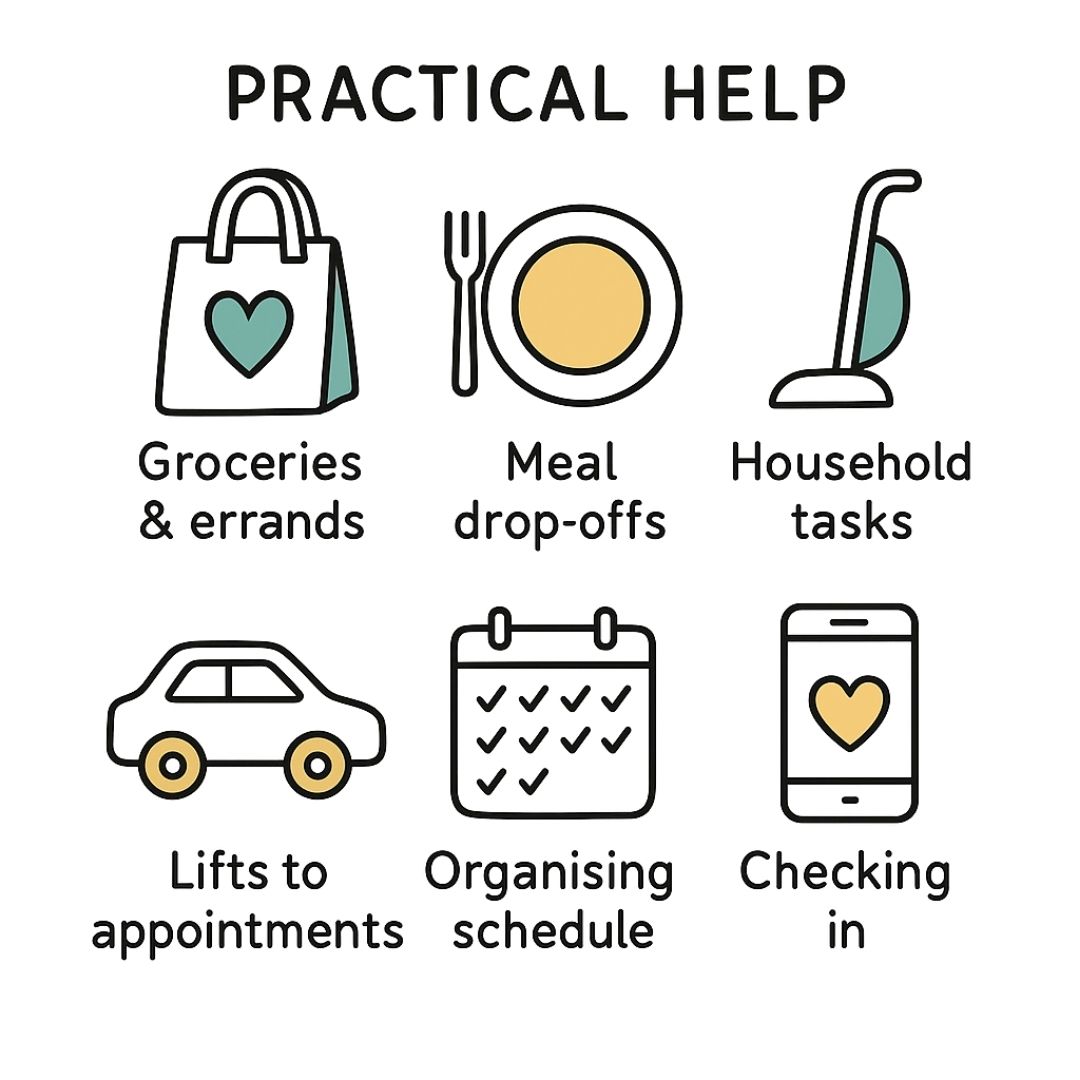 Think about the everyday tasks that suddenly become monumental during a health crisis. Here are a few practical ideas that can make a huge difference: