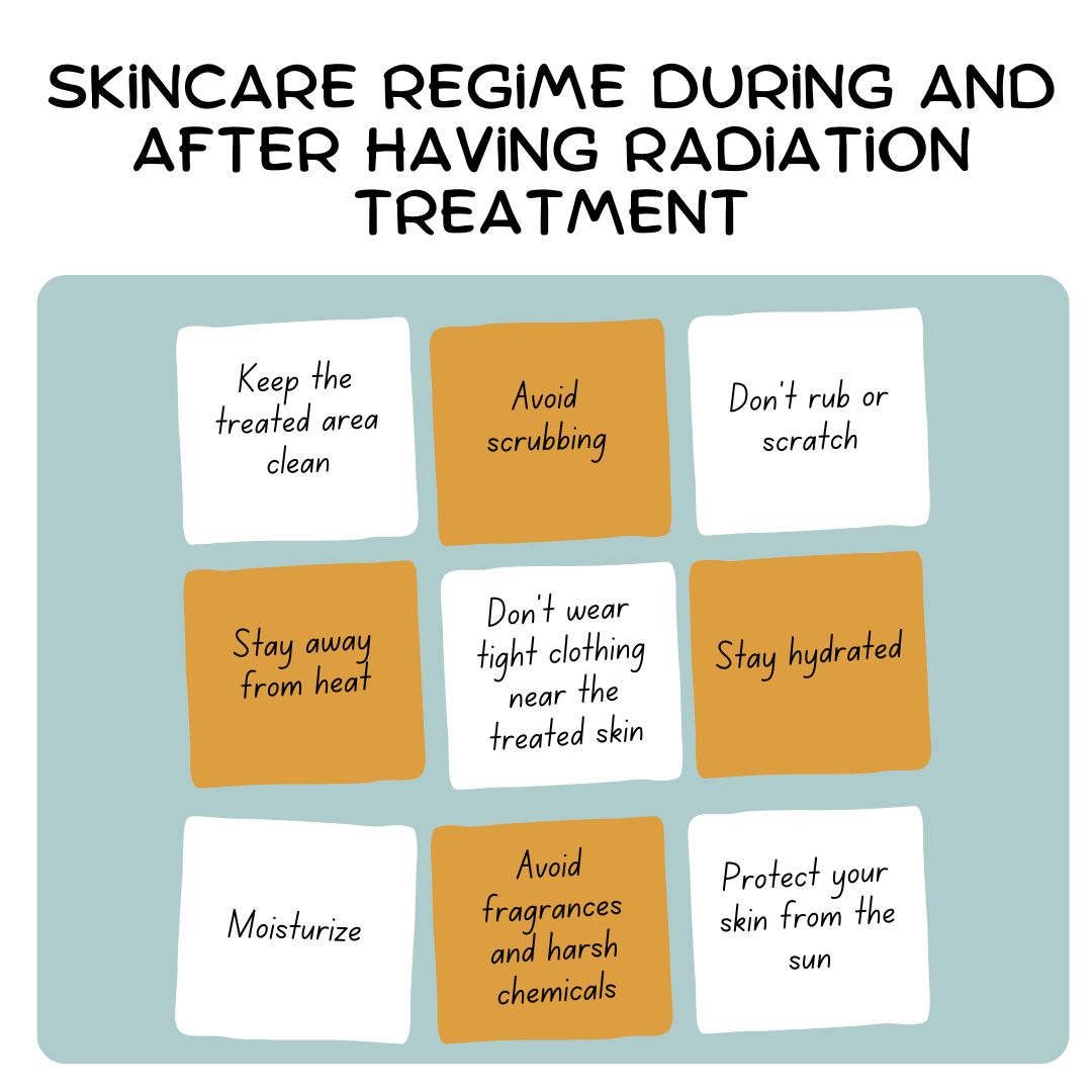 Everyone's skin is different, and you may or may not experience some side effects of radiation therapy but it's important to look after the treated area before during, and after treatment to minimize the effect you might have. Below we discuss further some of the guidelines above that need to be continued once therapy has started, plus a few other tips to help reduce the severity of any unwanted skin reactions.