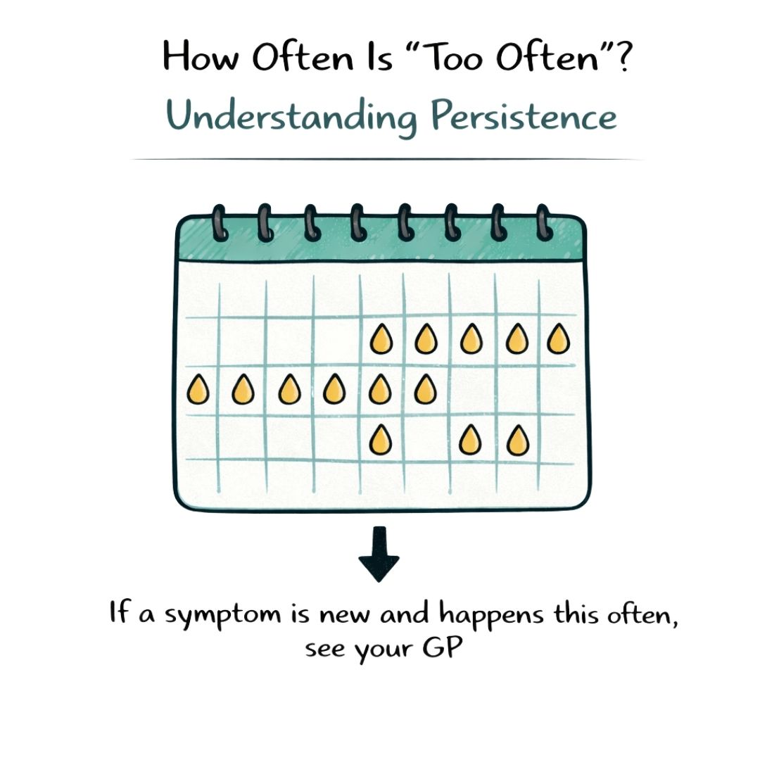 The real clue is in the pattern. Are the symptoms new for you? Do they stick around, happening almost every day for three weeks or more? That's when it's time to book an appointment with your GP to get things checked out.