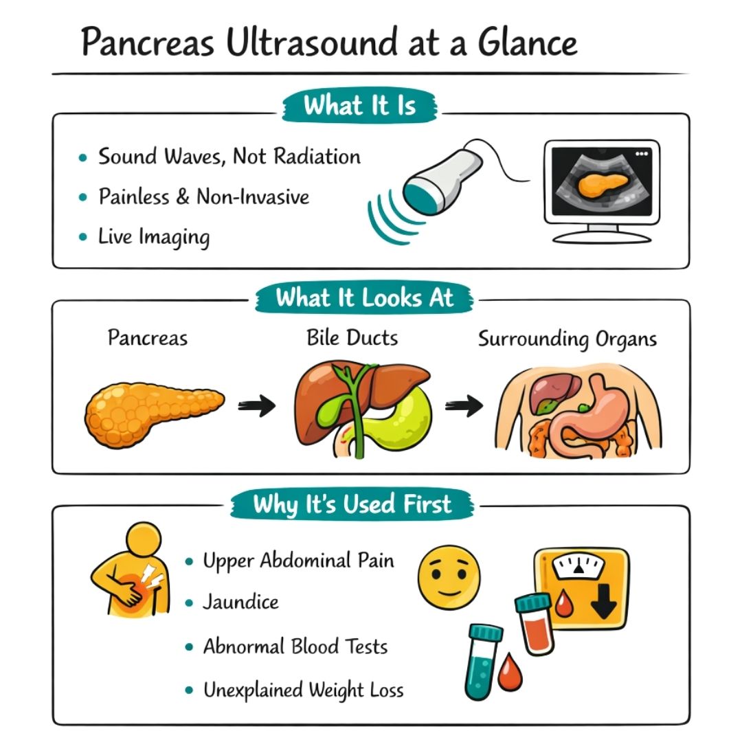 A pancreas ultrasound is a completely safe and painless imaging scan. It uses high-frequency sound waves, much like sonar, to create a live picture of your pancreas, giving doctors a first look at what’s going on without any radiation. It’s often the go-to starting point when investigating symptoms like unexplained pain in your upper abdomen or jaundice.