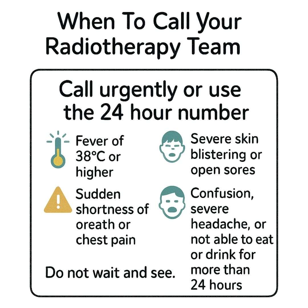 Some symptoms are more serious and should always trigger an immediate call to your oncology team or the 24-hour number they gave you. Don't just wait and hope these get better on their own.