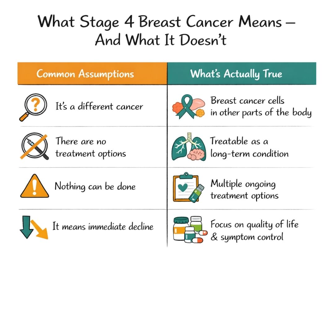 Hearing that you have stage 4 breast cancer can feel like the world has stopped turning. It’s a diagnosis that carries a lot of weight, and it’s completely normal to feel overwhelmed. What it means, simply, is that cancer that started in the breast has travelled to other parts of your body.