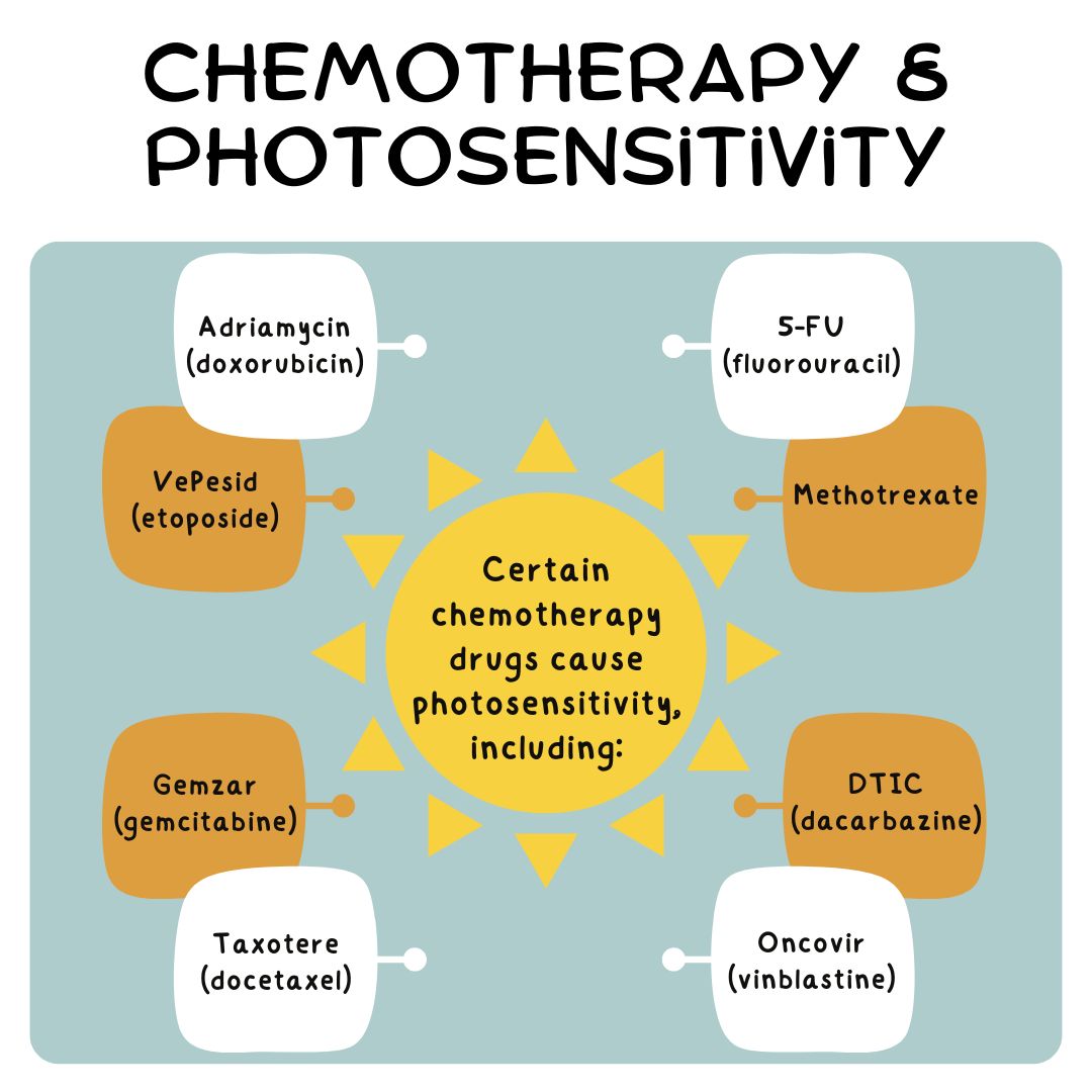 Certain forms of chemotherapy can make patients more sensitive to the sun (photosensitivity) and it is important to find out whether your treatment is one that may make you more sensitive,