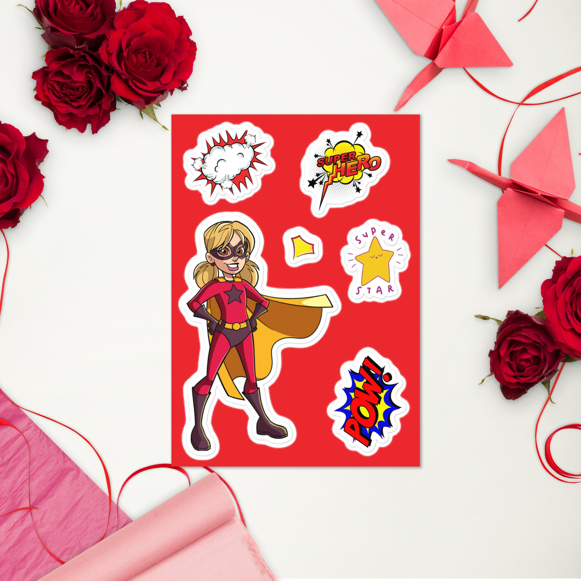 Unleash your inner superhero with our "Super Girl" Sticker Sheet! These glossy stickers are designed to add a touch of empowerment and personality to your favorite items.