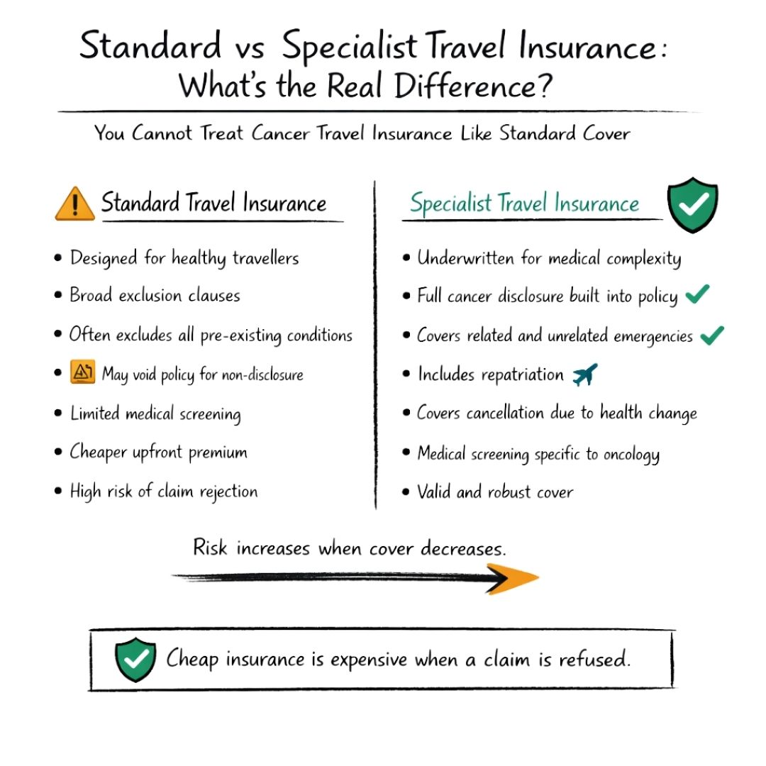 Your best bet is to focus your search on providers who genuinely specialise in travel insurance for pre-existing medical conditions. These insurers have underwriting teams who actually understand the nuances of a cancer diagnosis.
