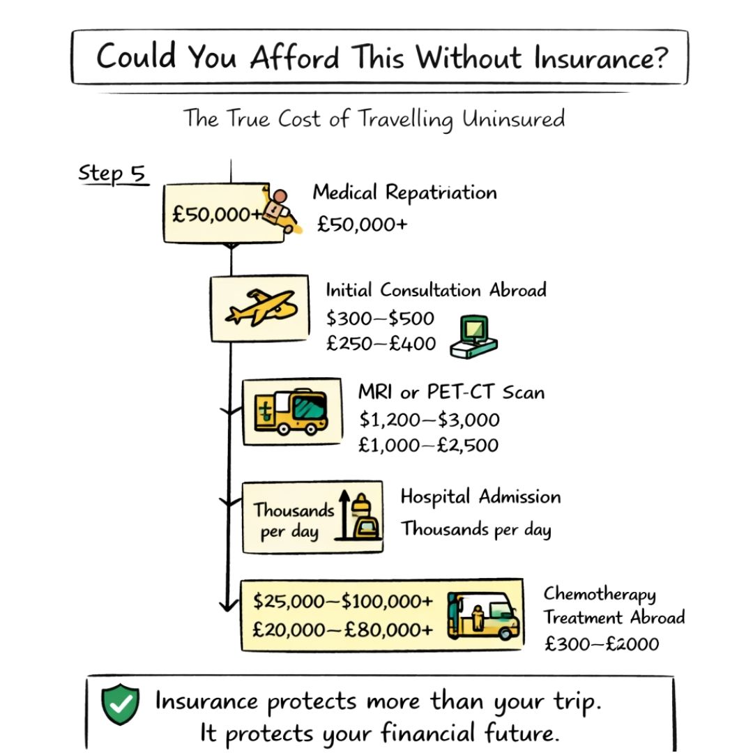 The financial fallout from travelling with the wrong insurance can be catastrophic. Medical care abroad, especially in places like the USA, comes with a staggering price tag. If your standard policy excludes claims related to cancer, you'd be left footing the entire bill for any medical issue that arises—even if it seems completely unrelated to your cancer history.