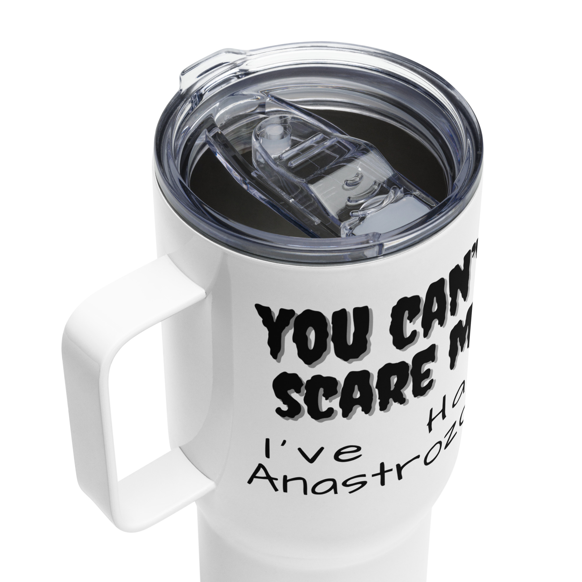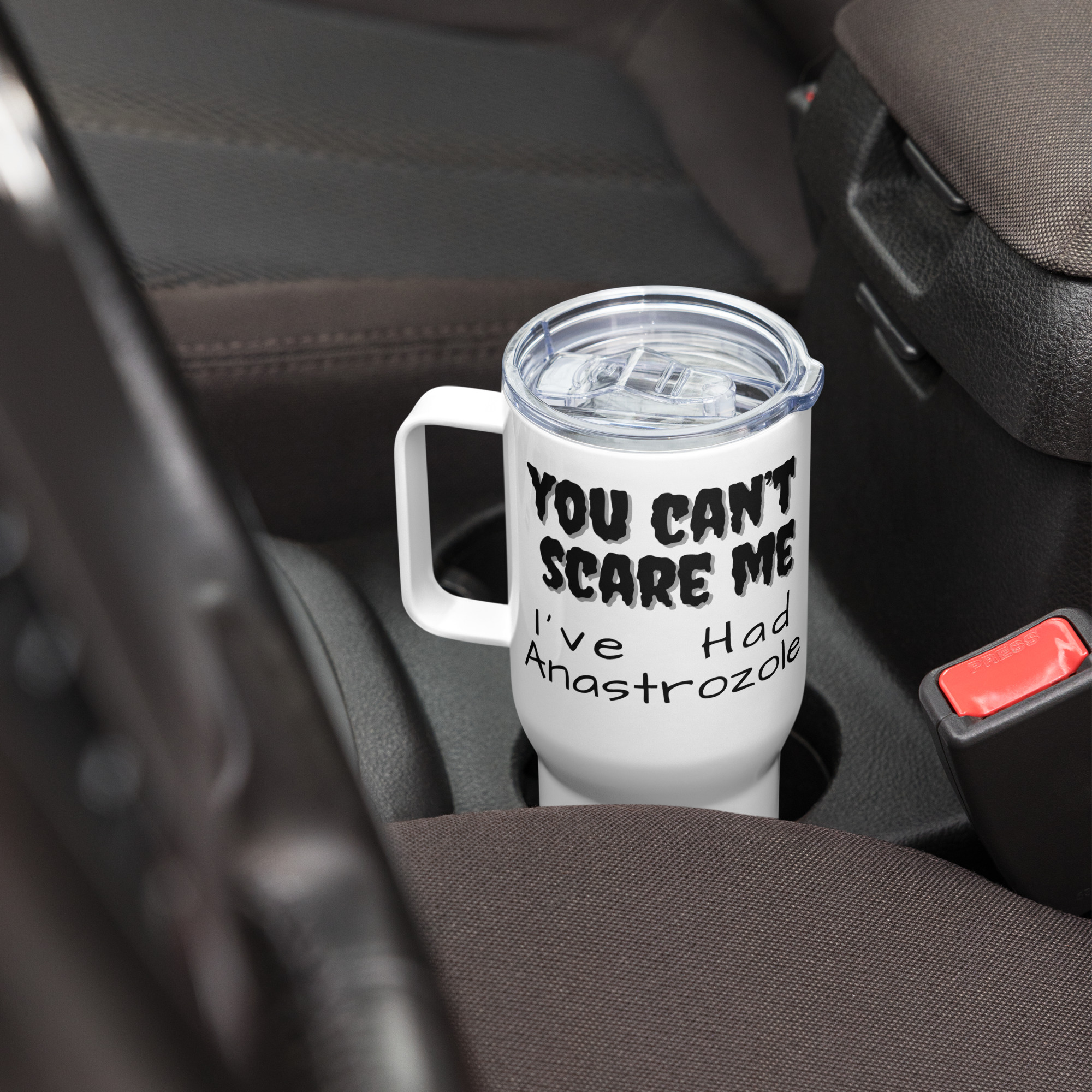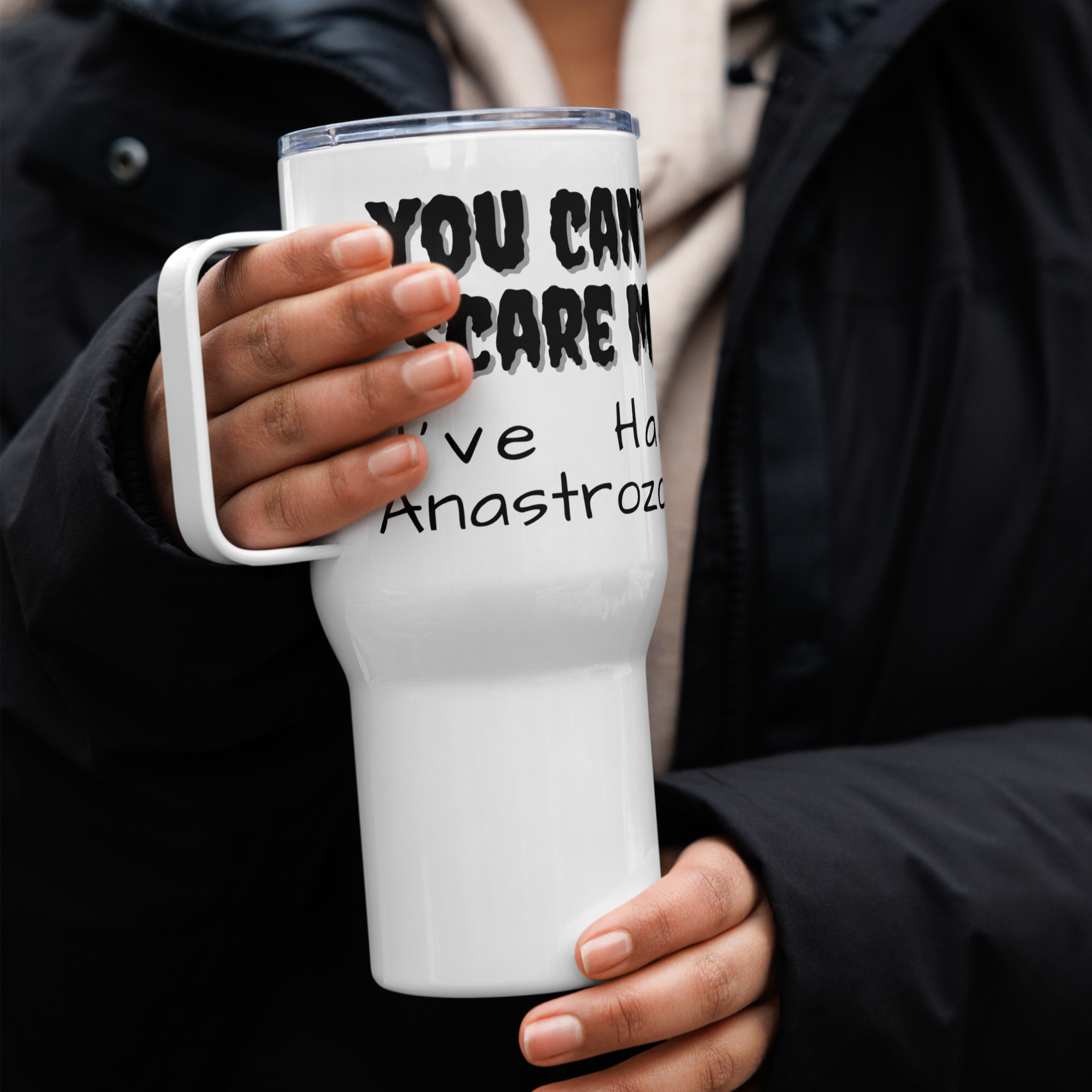 "You Can't Scare Me I've Had Anastrazole" Travel Mug with a Handle